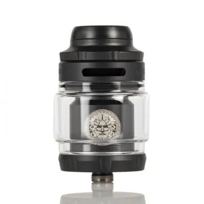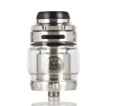 Equipado com um deck de construção sem postes, o Zeus X Mesh RTA utiliza resistências mesh, fixadas lateralmente por parafusos Phillips. No centro do deck, um suporte de algodão cerâmico com mola eleva o algodão para manter contato firme com a resistência mesh instalada. Com enchimento superior por um quarto de volta, o Zeus X Mesh RTA comporta até 4,5 mL de e-líquido em seu vidro borossilicato.